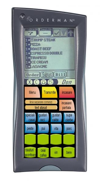 Transmitator radio al comenzilor opatarilor la bucatarie , bar etc. Produsul este fabricat de Orderman Austria, fiind rezistent la apa, socuri, cu o siguranta 100% la transmitere comenzilor. Este integrat in sistemul de aplicatii pentru restaurante Classoft. Poate comanda o minimprimanta mobila atasata la centura ospatarului pentu note de plata.